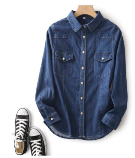 大人カジュアルな無地カラーの長袖デニムシャツです。