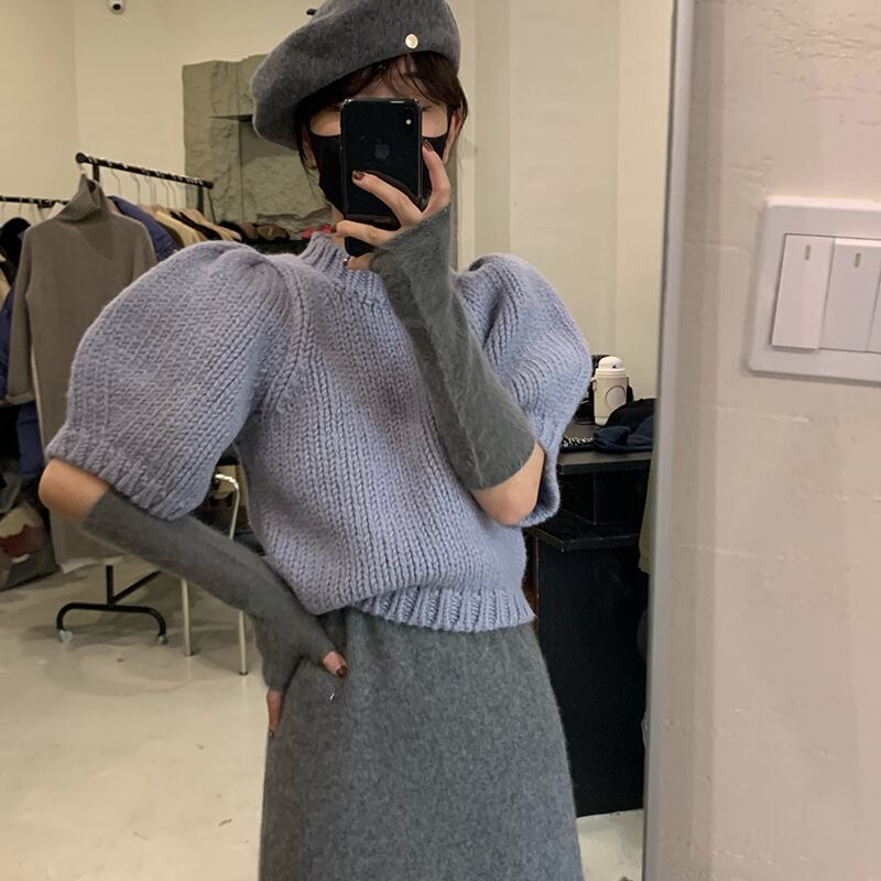 ニット セーター 半袖 シンプル 無地 大人カジュアル 大人可愛い パフスリーブ お出かけ 秋 冬