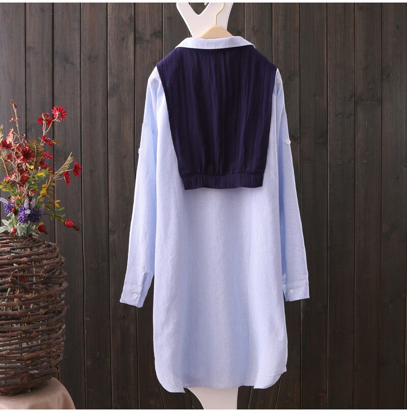 シャツ 長袖 ストライプ柄 肩掛け風 ロング丈 大人カジュアル 重ね着風 デート お出かけ 秋 春
