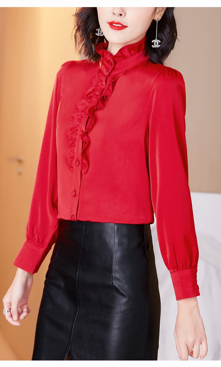 ブラウス シフォンブラウス 長袖 フリル シンプル 無地 大人可愛い きれいめ 上品 お出かけ