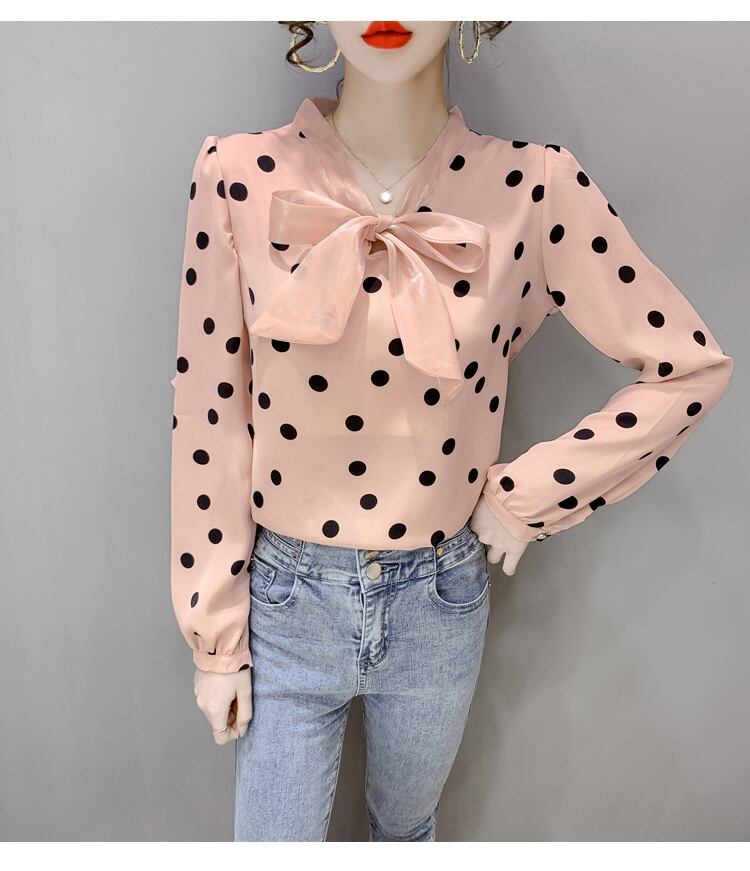 ブラウス シフォンブラウス 長袖 水玉 ドット柄 リボン 大人可愛い レトロ キュート デート お出かけ