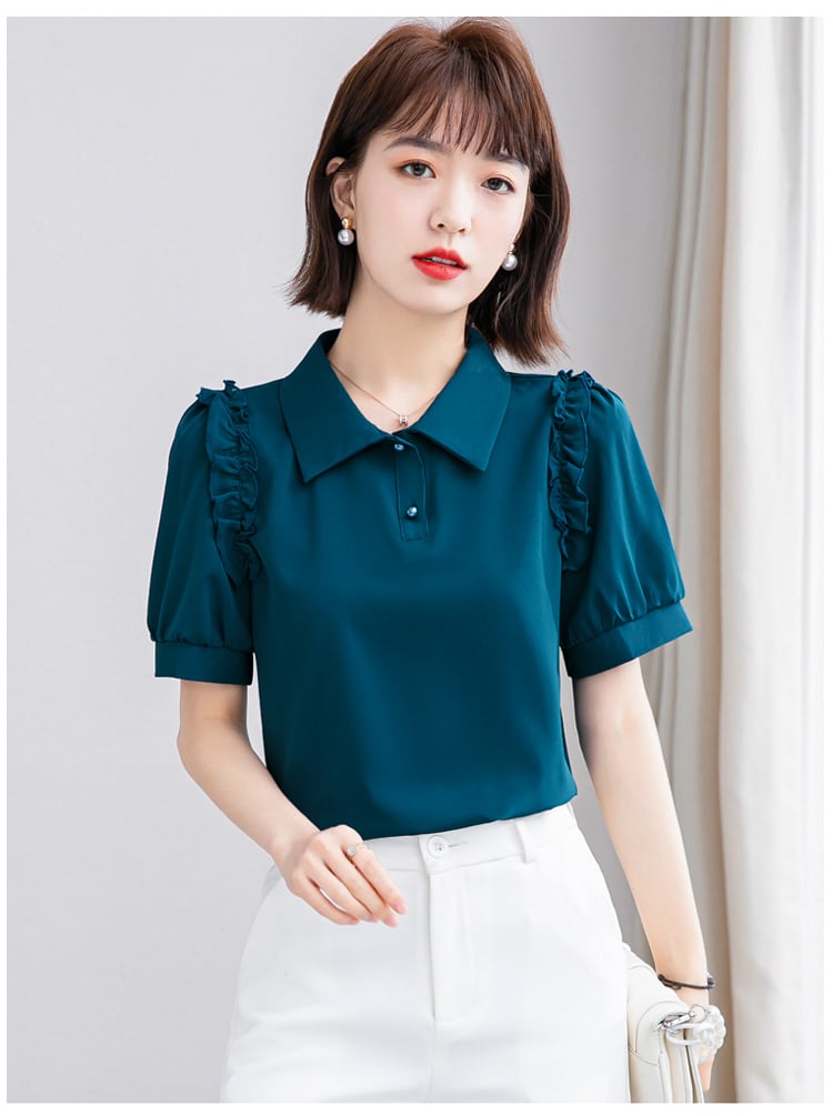 ブラウス カットソー 半袖 フリル シンプル 無地 きれいめ 大人可愛い 大人カジュアル お出かけ