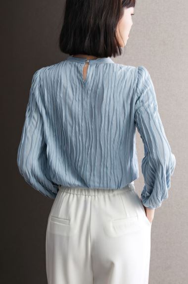 ブラウス 長袖 ラウンドネック シンプル 無地 きれいめ 大人カジュアル 上品 お出かけ