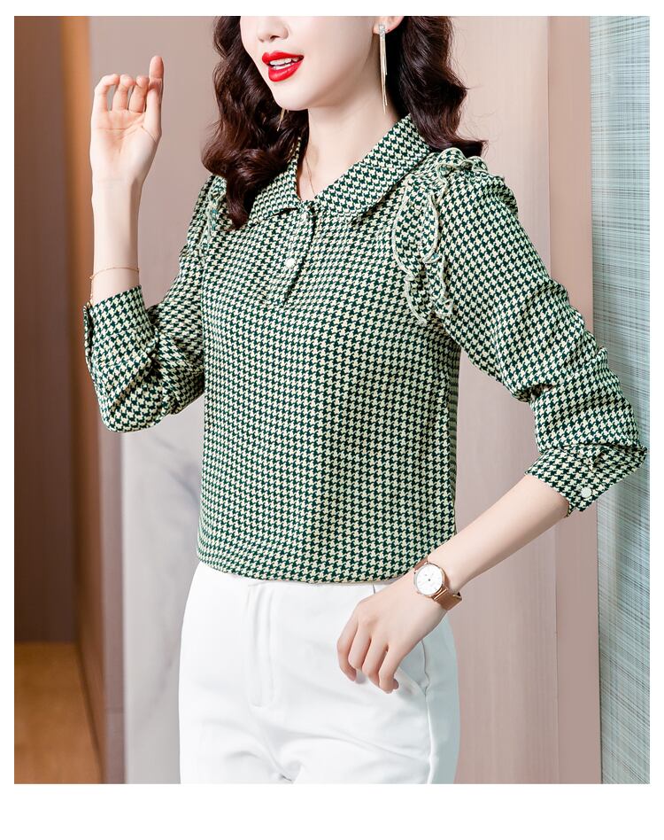 ブラウス シャツ 長袖 襟付き フリル 千鳥格子柄 大人カジュアル 大人可愛い デート お出かけ