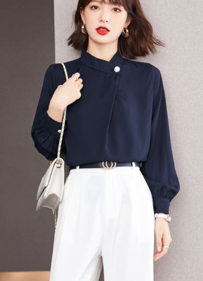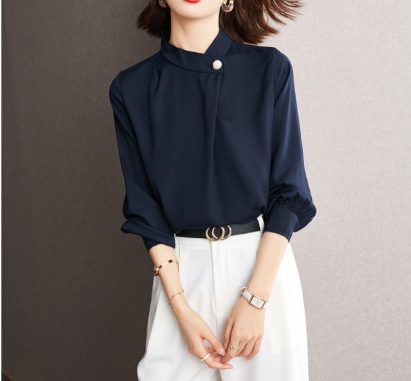 きれいめな無地カラーの長袖ブラウスです。