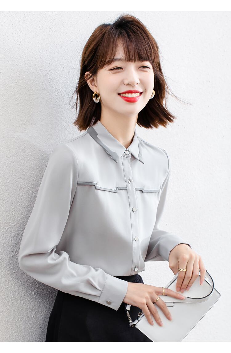 きれいめな無地カラーの長袖ブラウスです。