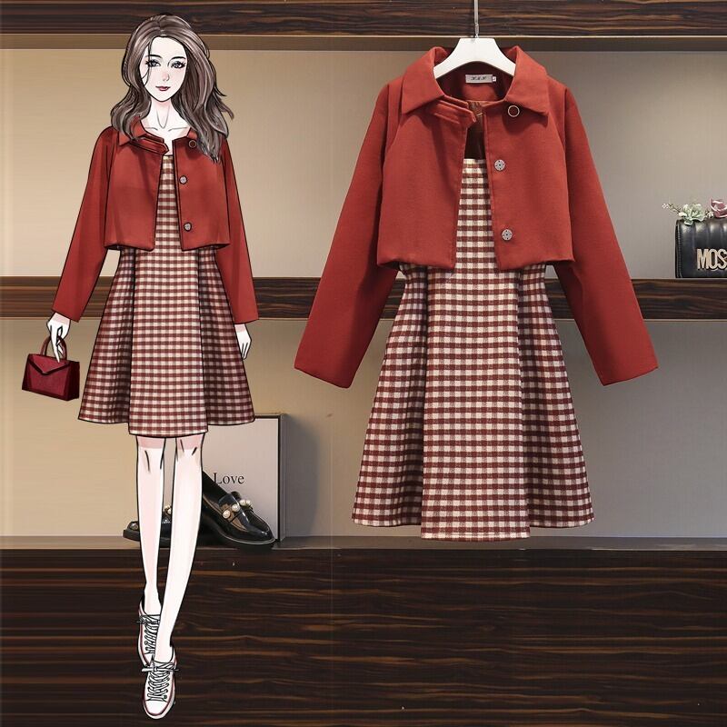 セットアップ ツーピース ジャケット 長袖 ショート丈 ワンピース ノースリーブ ミニ丈 チェック柄
