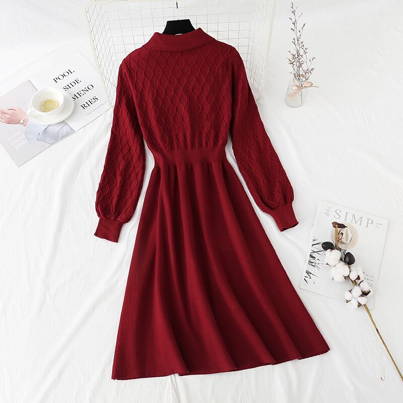 大人カジュアルなニット素材の膝丈ワンピースです。