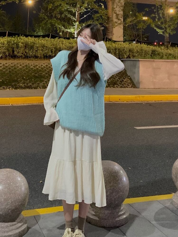 ワンピース フレアワンピース 長袖 ロング丈 ミモレ丈 フレア シンプル 無地 大人可愛い デート