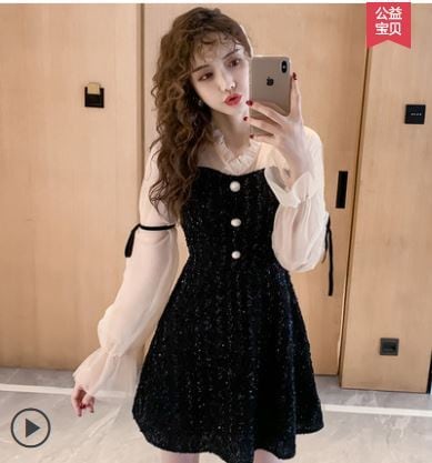 ワンピース 長袖 ミニ丈 ツイード シースルー 透け感 大人可愛い 切り替えデザイン デート お出かけ