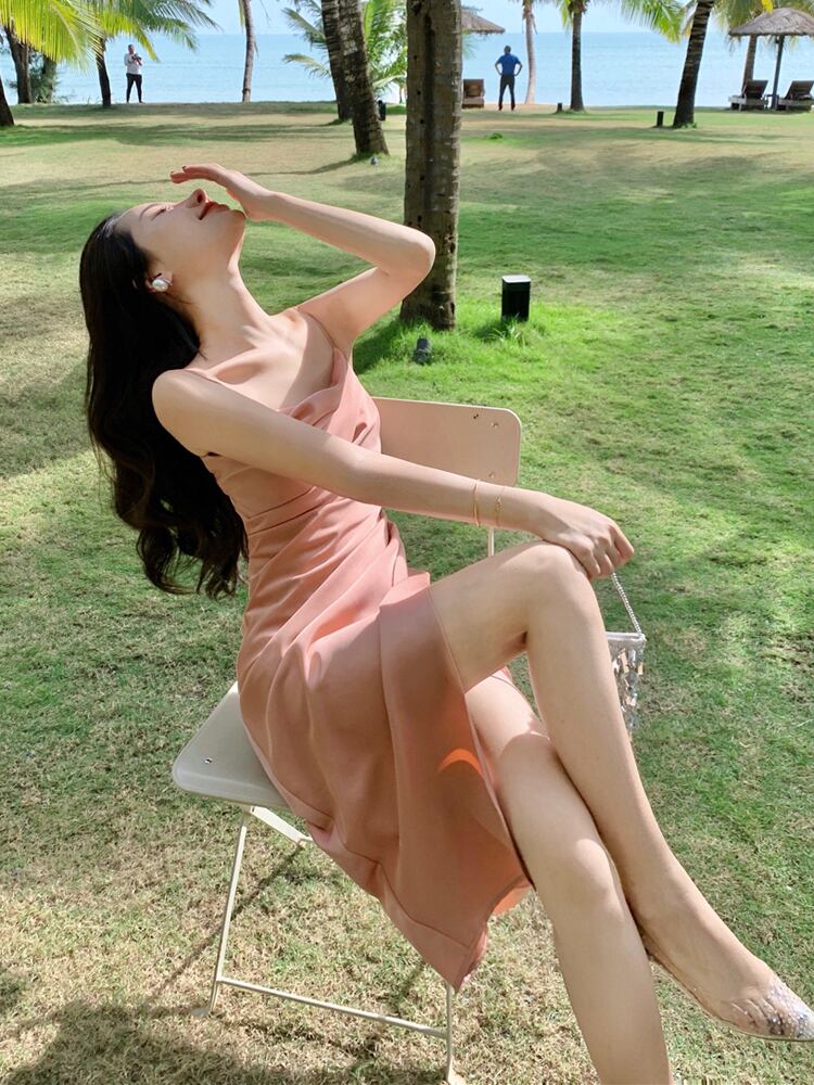 ワンピース キャミソールワンピース ノースリーブ 膝丈 スリット シンプル 無地 きれいめ 上品