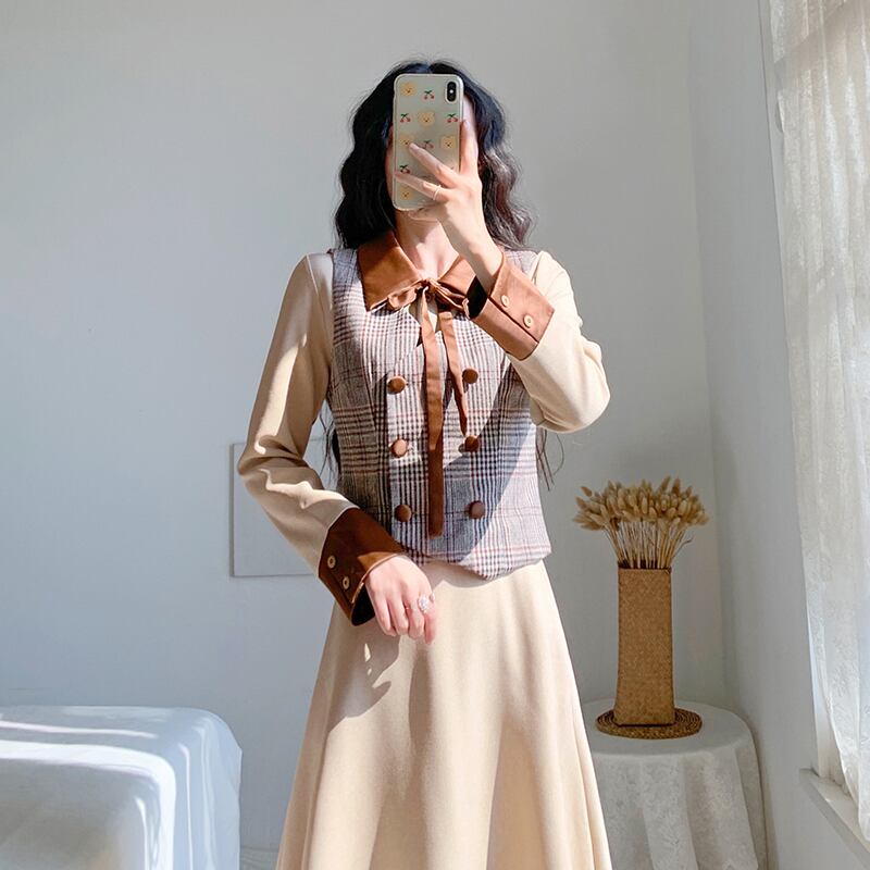 ワンピース 長袖 ミモレ丈 フレア 切り替えデザイン チェック柄 大人カジュアル きれいめ デート お出かけ