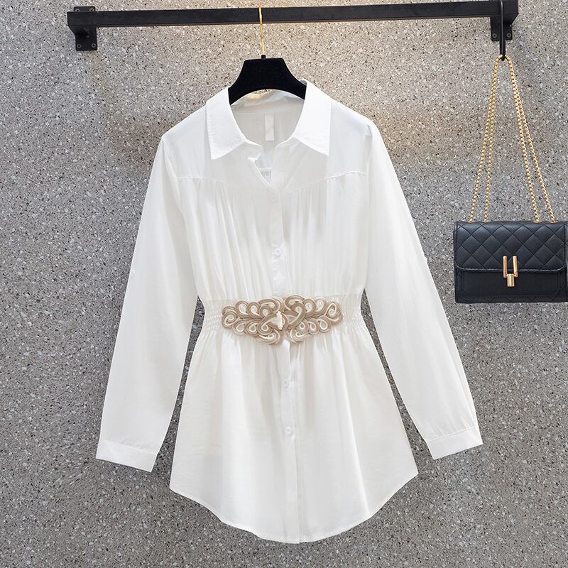 シャツ 長袖 ロング丈 ウエストベルト シンプル 無地 大人カジュアル きれいめ ゆったり お出かけ 春