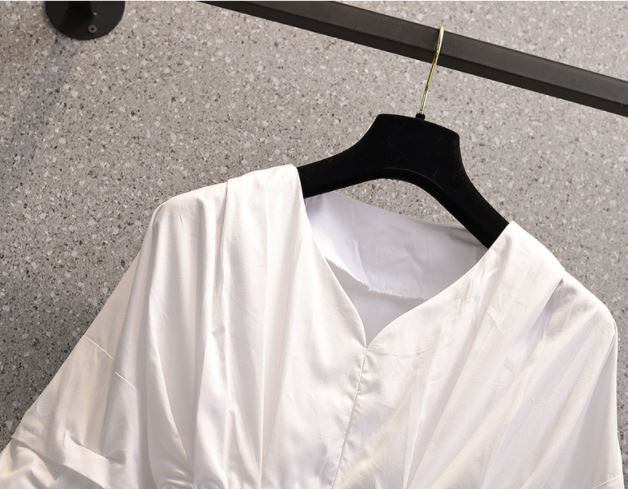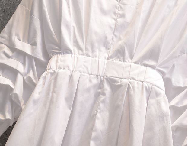 シャツ ブラウス 長袖 Vネック フレア シンプル 無地 大人カジュアル ウエストギャザー 春