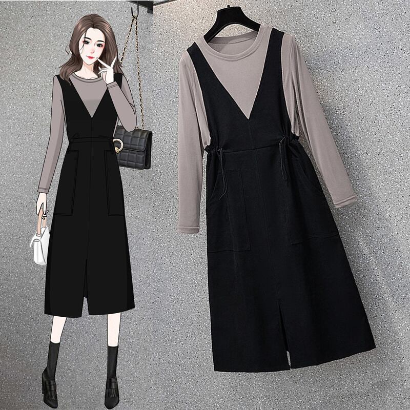 ワンピース 長袖 膝丈 重ね着風 シンプル 無地 大人カジュアル きれいめ 上品 デート お出かけ