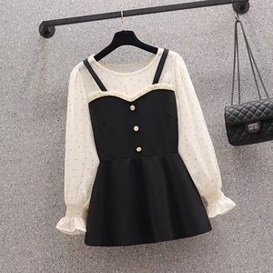 ワンピース 長袖 ミニ丈 重ね着風 シンプル 無地 大人カジュアル デート お出かけ モノトーン