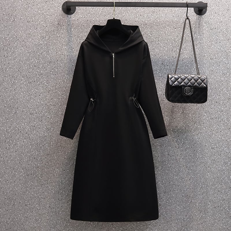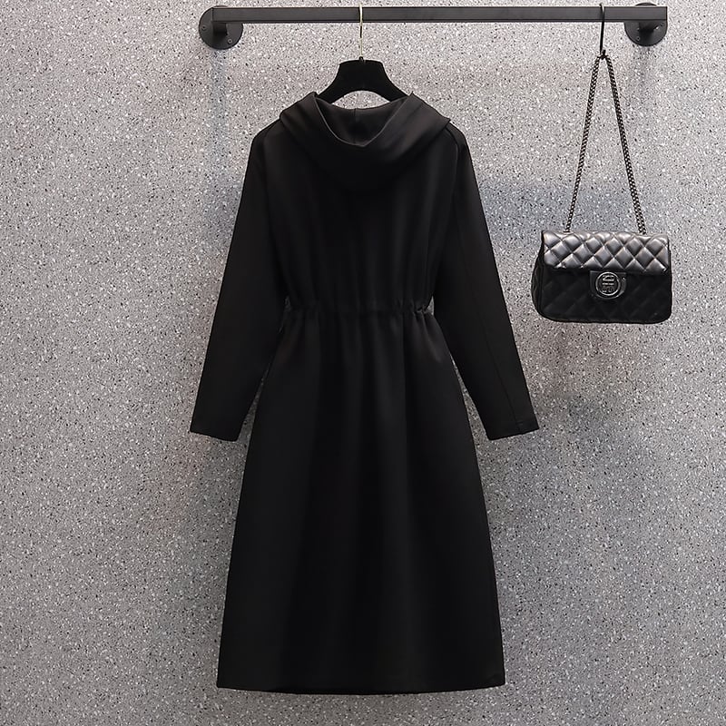 ワンピース 長袖 膝丈 フード スウェット カジュアル シンプル 無地 ゆったり お出かけ