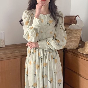 大人可愛い小花柄デザインのミモレ丈ワンピースです。