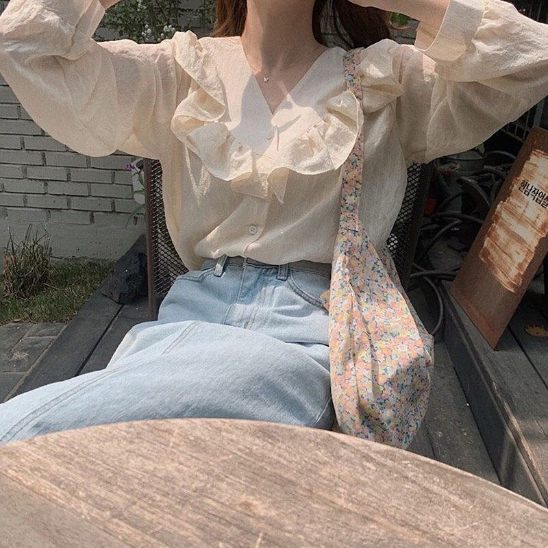 ブラウス 長袖 フリル シンプル 無地 大人可愛い きれいめ 薄手 ゆったり デート お出かけ 春