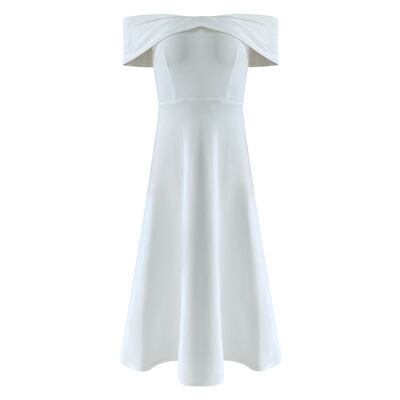 ワンピース ミモレ丈 フレア オフショルダー シンプル 無地 きれいめ 上品 フォーマル お呼ばれ