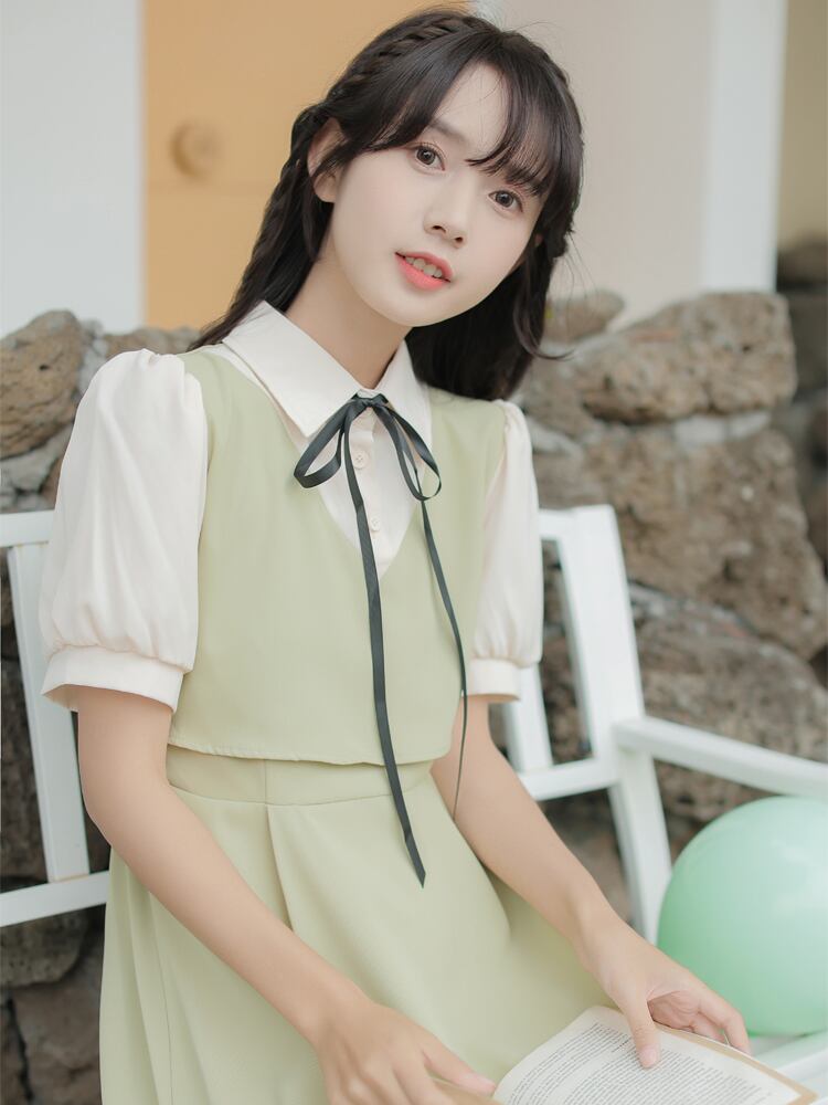 上下分かれているような作りですが一枚でさっと着れるワンピースです!